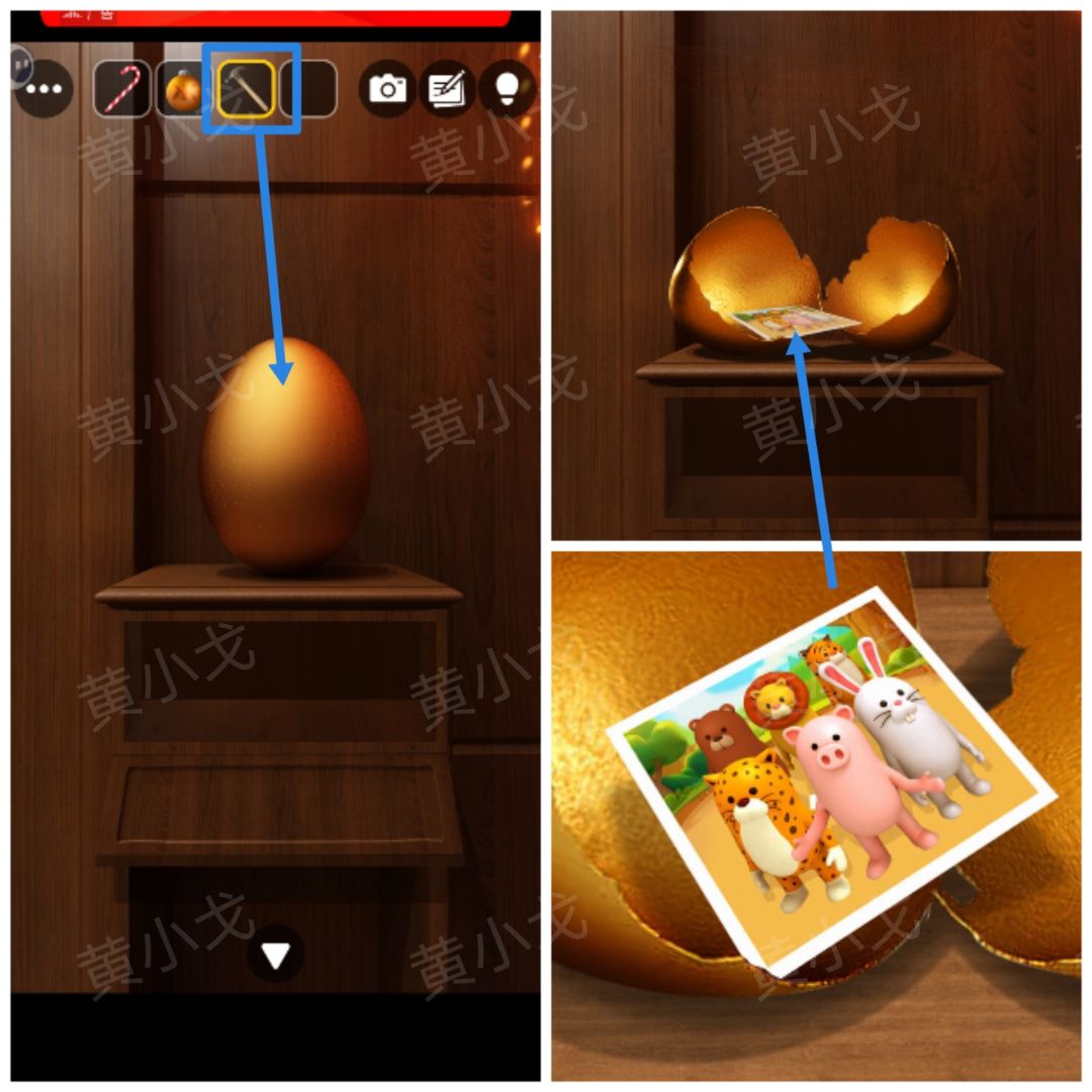 1.用【锤子】砸碎金蛋,查看里面的照片