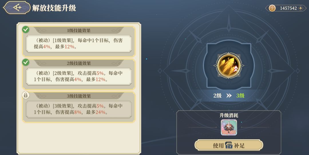 解放技能建议点选。「火力打击之道」与露维塔的契合度非常高,资源足够时升到3级也不亏。