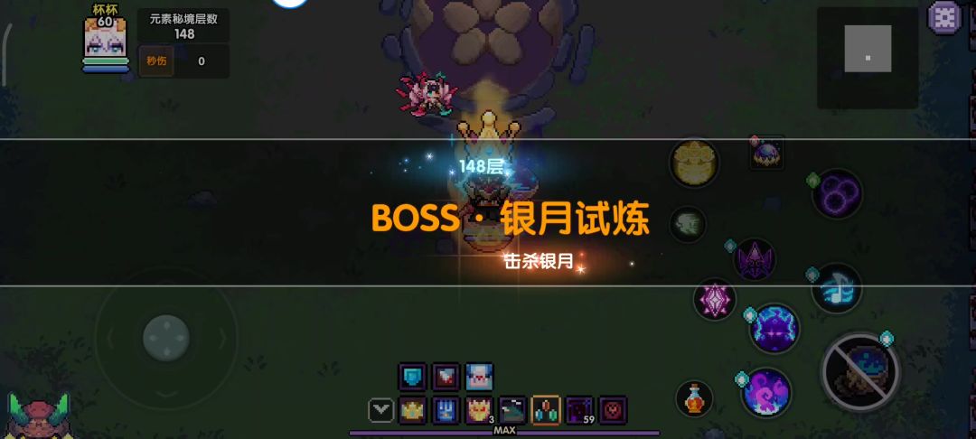 4、触发boss召唤小怪的时候,注意释放魂力爆发之后把小怪引到一边去,远离boss,等定住小怪后再回到boss身旁输出。(看1分14秒后的操作)