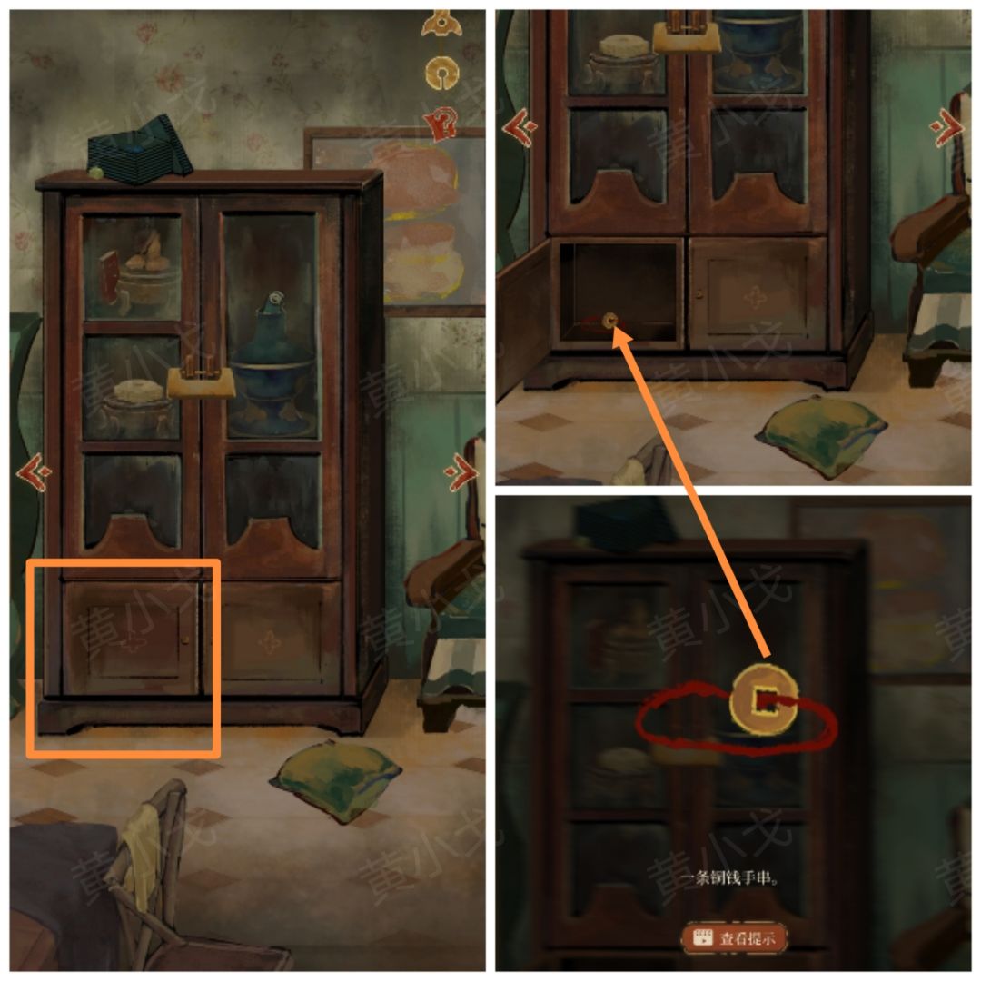 1.打开柜子左侧柜门,获得【铜钱手串】