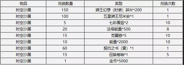 10月16日-10月23日,挑战活动副本 「狮王幻想」,收集一定数量的时空沙漏就能兑换包括五星尼米安及全新时装在内的多重福利!