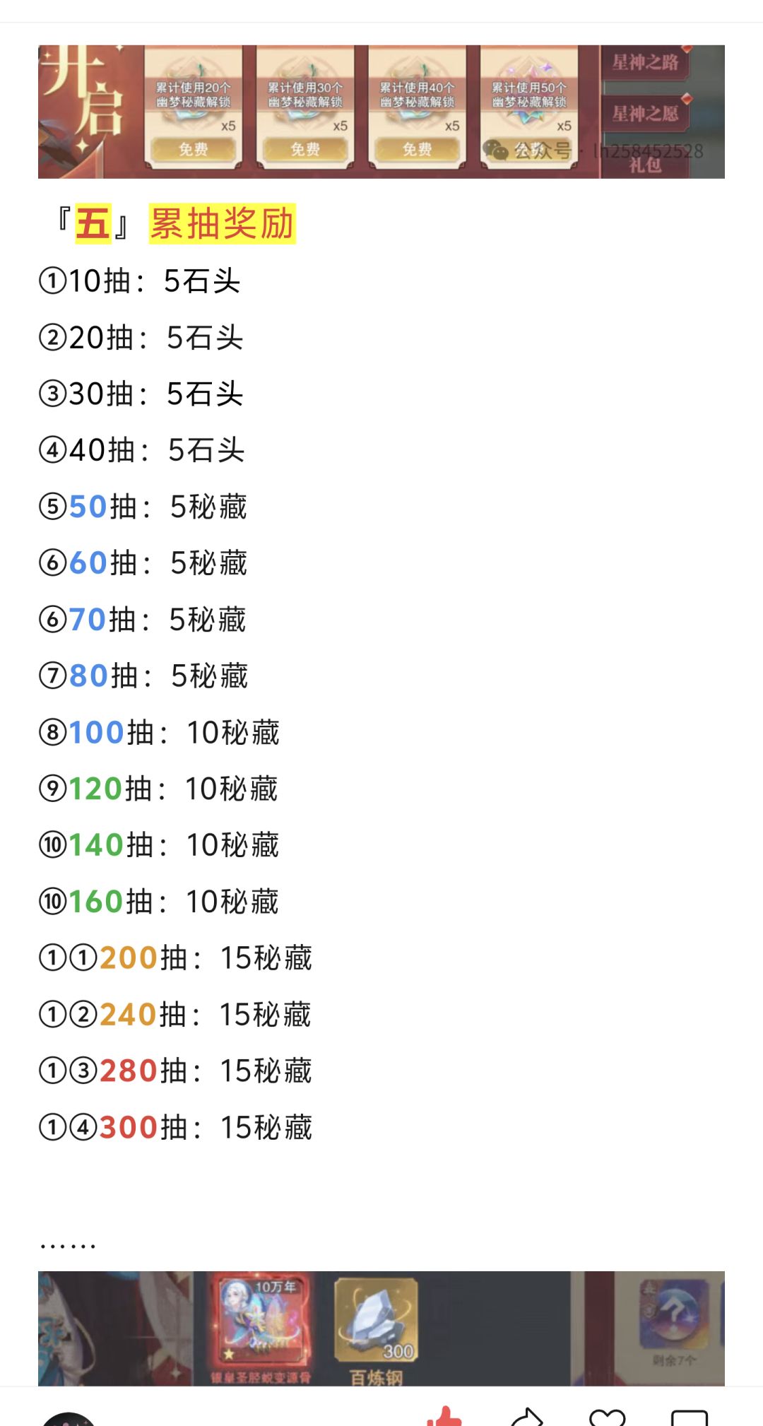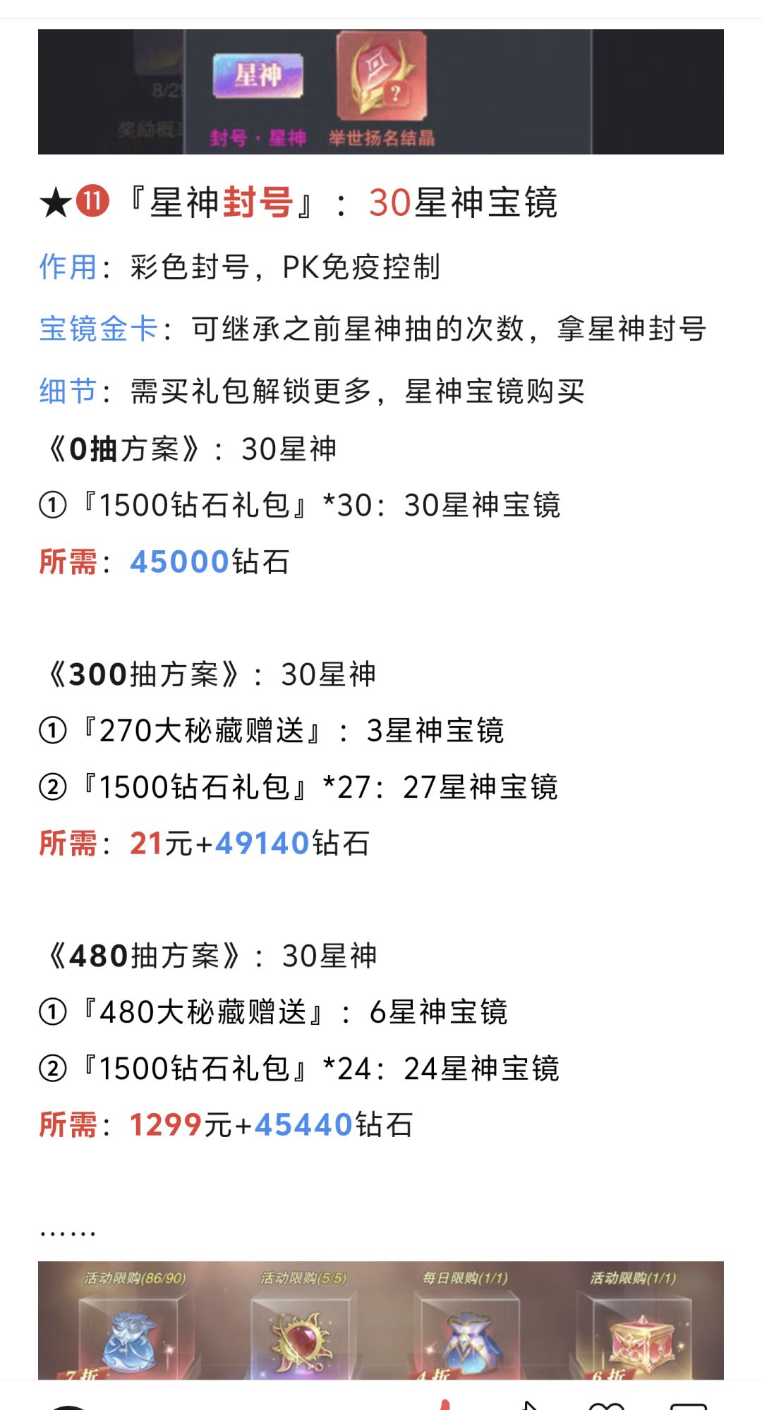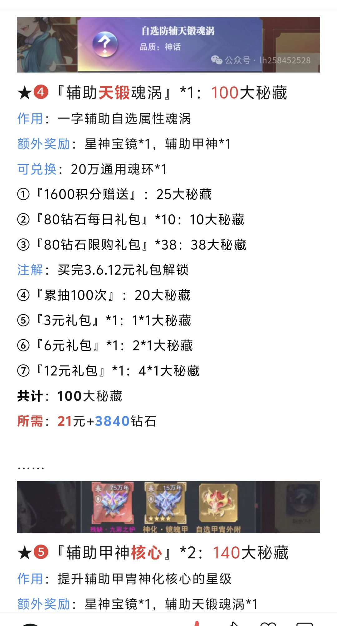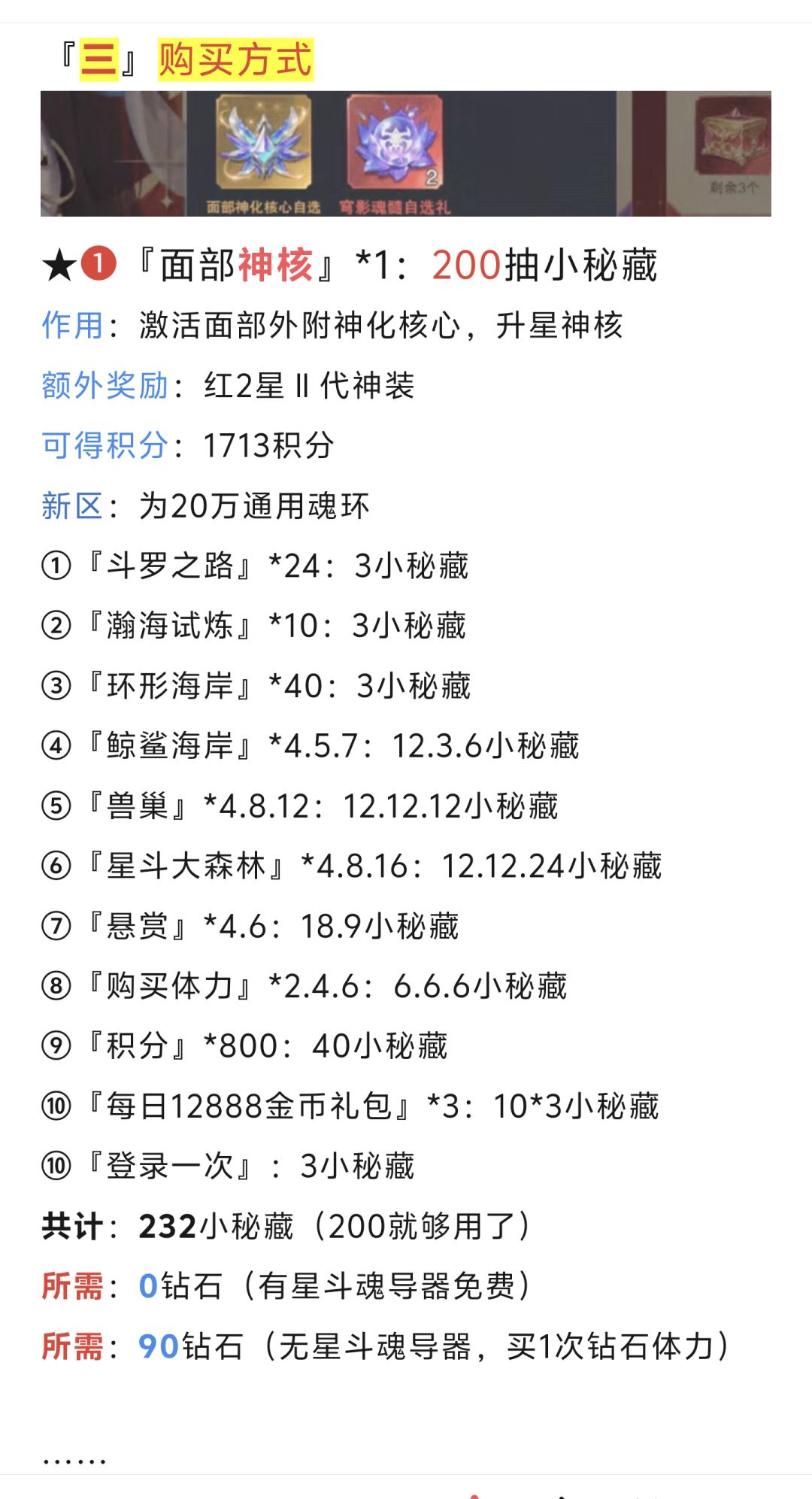 ⑥200小秘藏:老区面部,新区20万通用魂环⑧30星神宝镜:都是封号星神