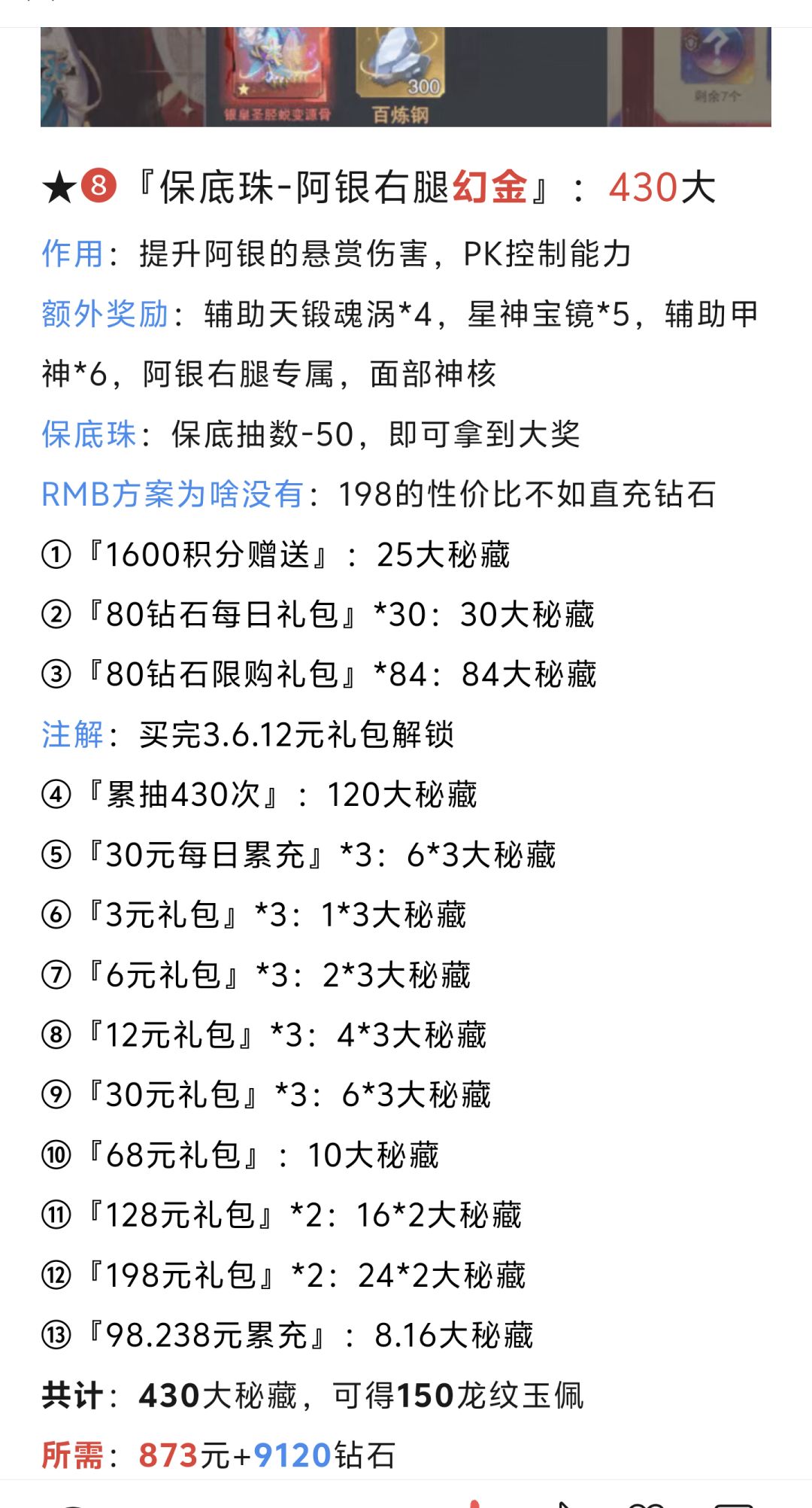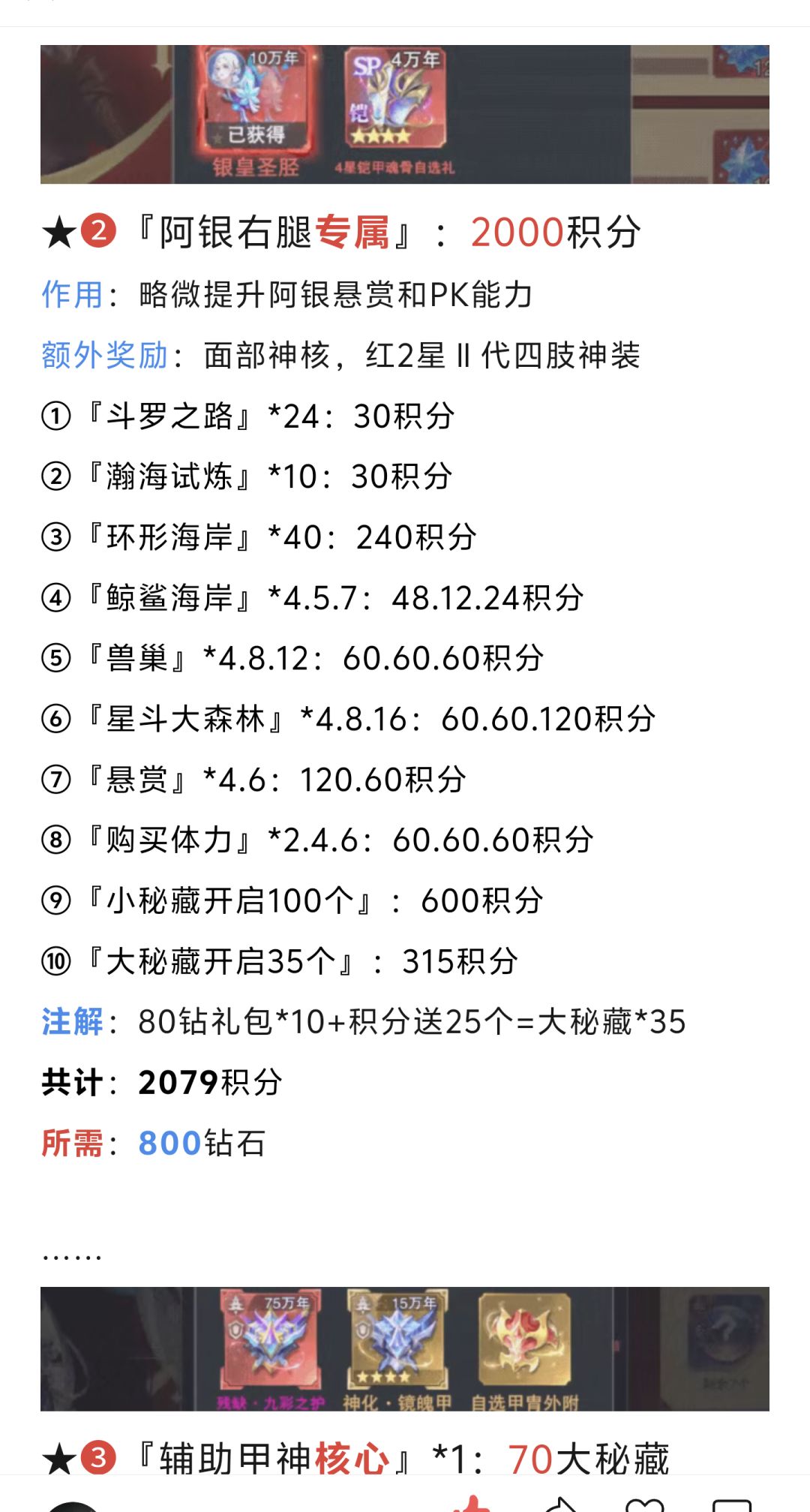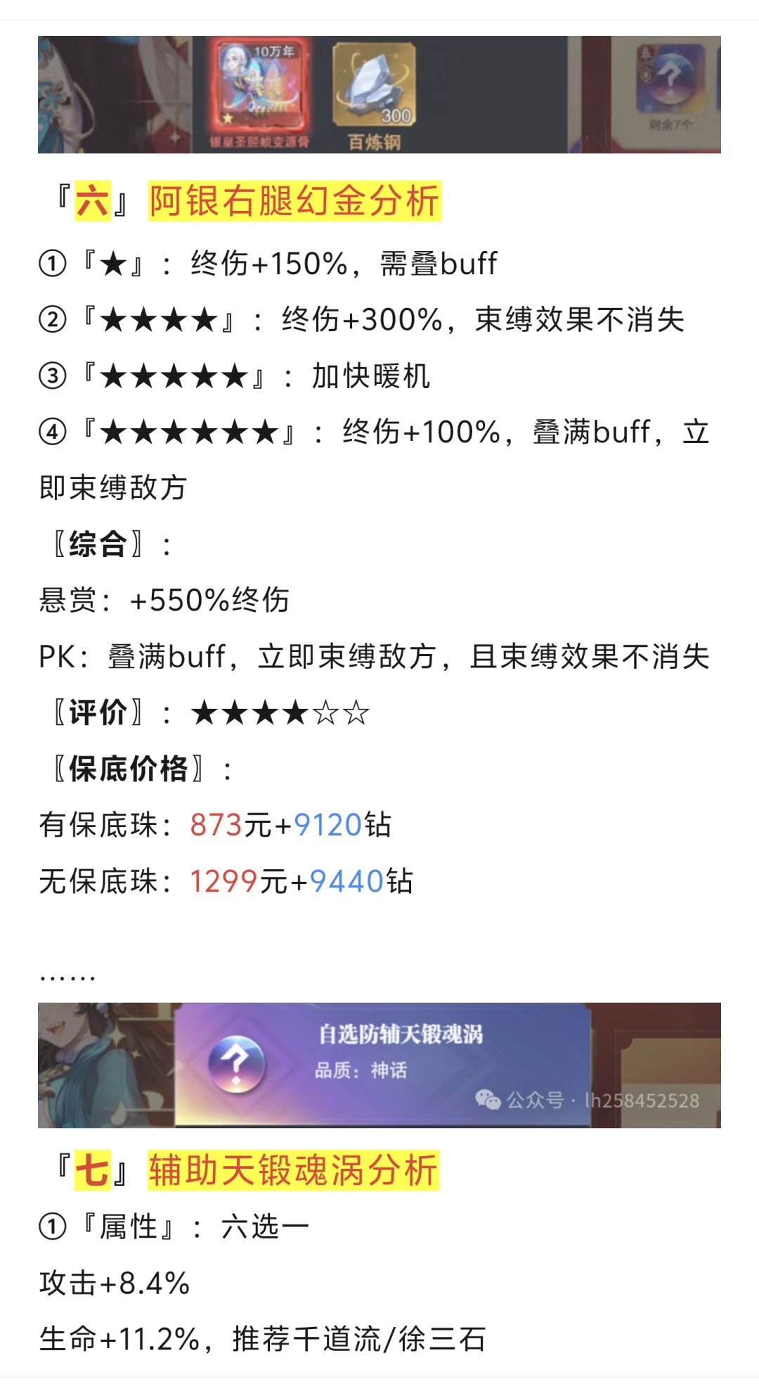 ④70抽:老区辅助甲神核心,新区魄锻魂涡⑤2000积分:都是阿银右腿专属