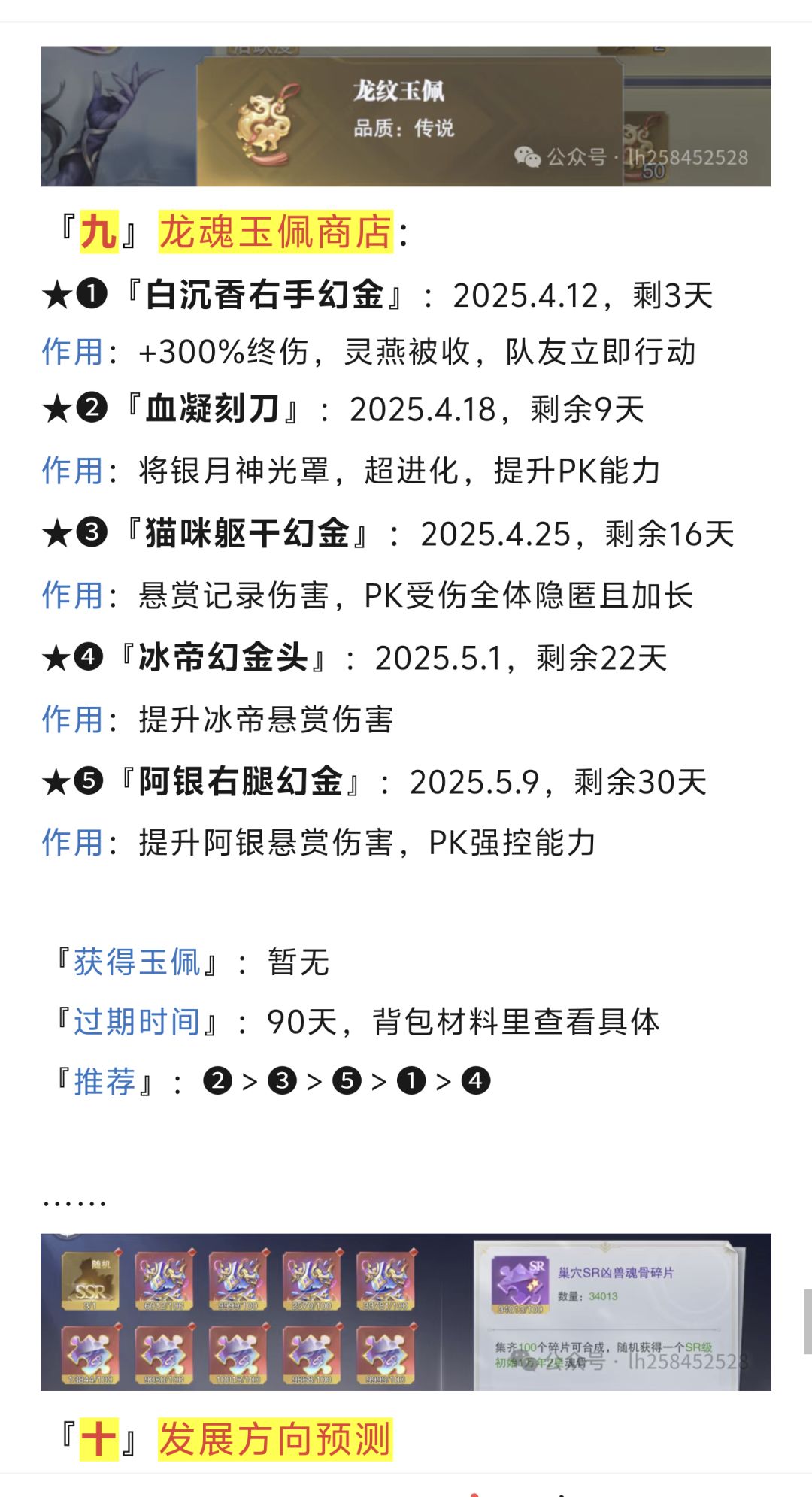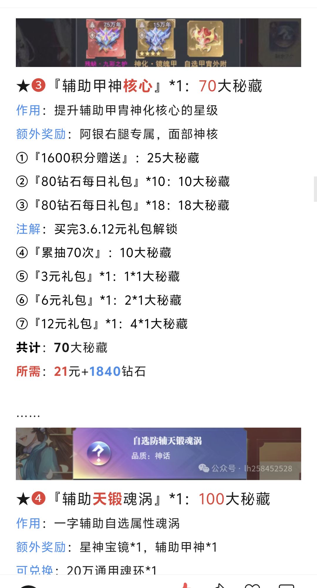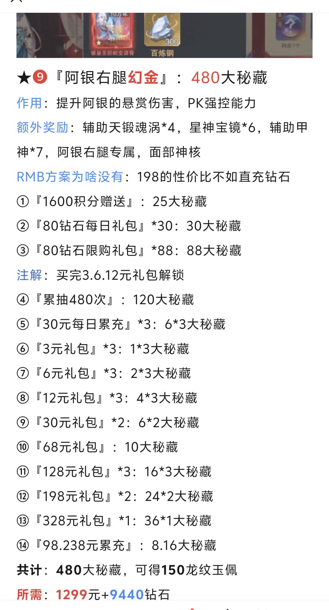 ④70抽:老区辅助甲神核心,新区魄锻魂涡⑤2000积分:都是阿银右腿专属