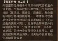 伤害系数加成仅次于暗主和狼王,比利维坦风王哈迪斯(374%伤害系数)要高了一点点,但是因为主要面对坦克单位,所以即使拥有高额的伤害系数以及穿透,还是很难打出伤害。猴王分身:分身会继承本体 50%的攻血以及全额buff(非控制型),以及各种被动特效(详情请看游戏内描述)本体进行攻击后分身会模仿本体的攻击,造成原技能 50%的伤害,相当于自带一个高配版物连,且不会与物连天赋重复。另外悟空在召唤分身时是从剩余的四个格子随机挑选位置,保留了部分随机性使对战更加精彩。