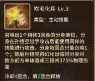 孙悟空召唤一个持续三回合的分身,并对前方单体目标造成三段总共375%伤害加成的物伤
