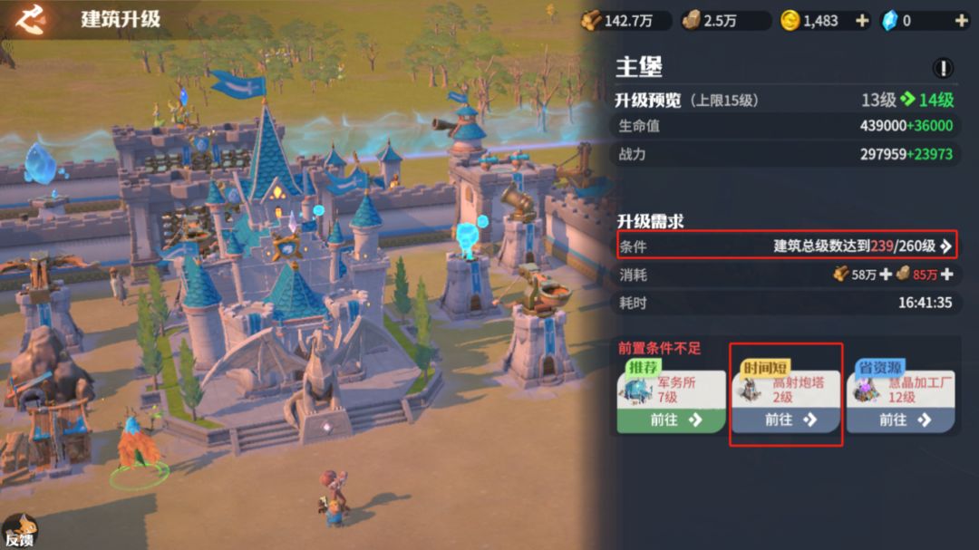 🚨注意:主堡升级仅需要建筑总级数达标即可,优先升级防御塔等建造时间短的建筑!