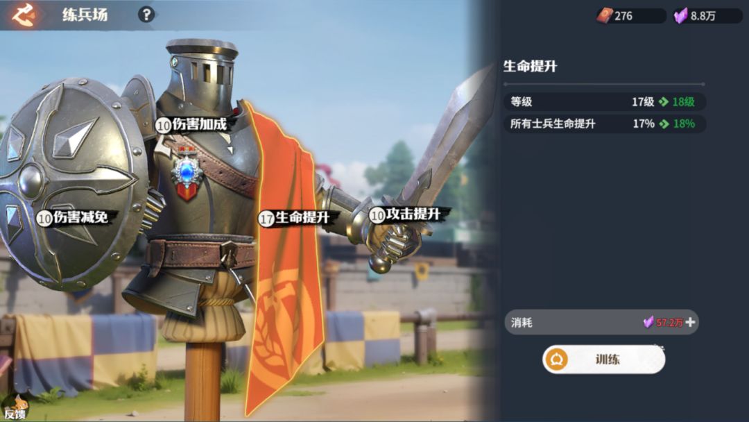 主堡15级后的兵种提升不再是一键全部升级,而是单独提升兵种优先提升巨力橡果、刚毅石人和丧气泥人。