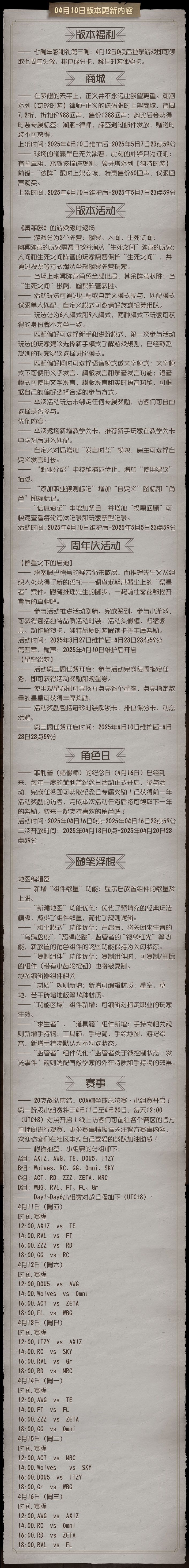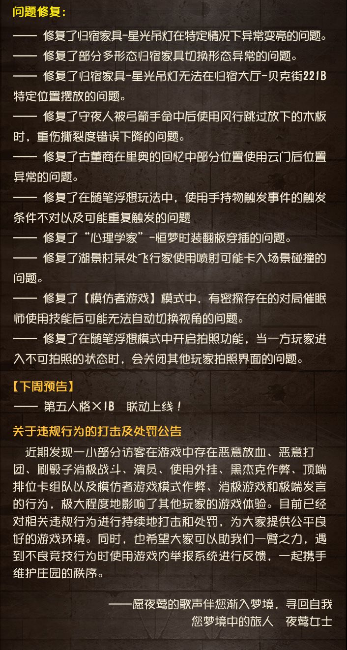 #第五人格维护公告