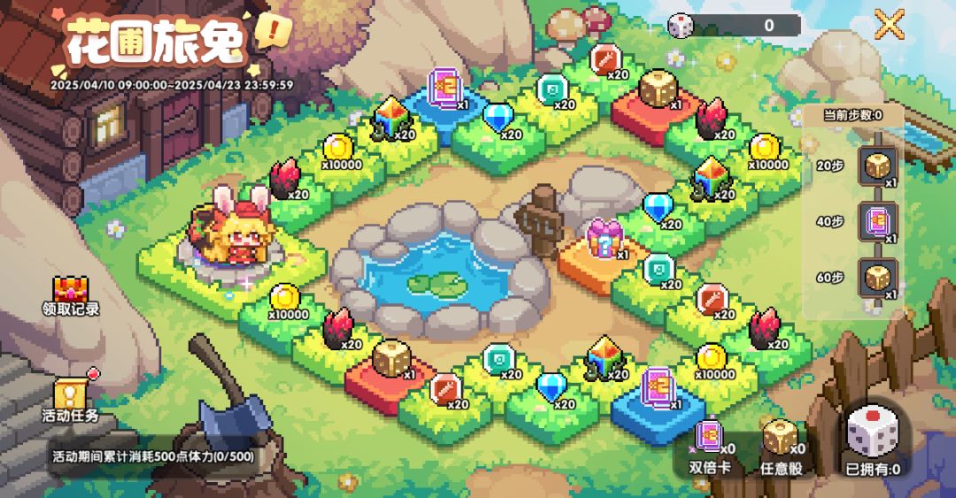 活动期间可通过登录游戏、完成活动任务等获得指定骰子,投掷骰子获得步数移动后可获得对应格子奖励