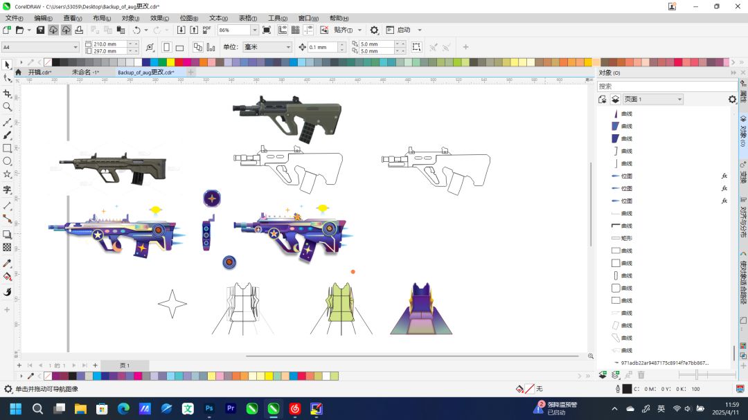枪背上乘坐不明飞行物降临的外星人和枪尾的蓝色尾焰代表了我们对探索宇宙的渴望