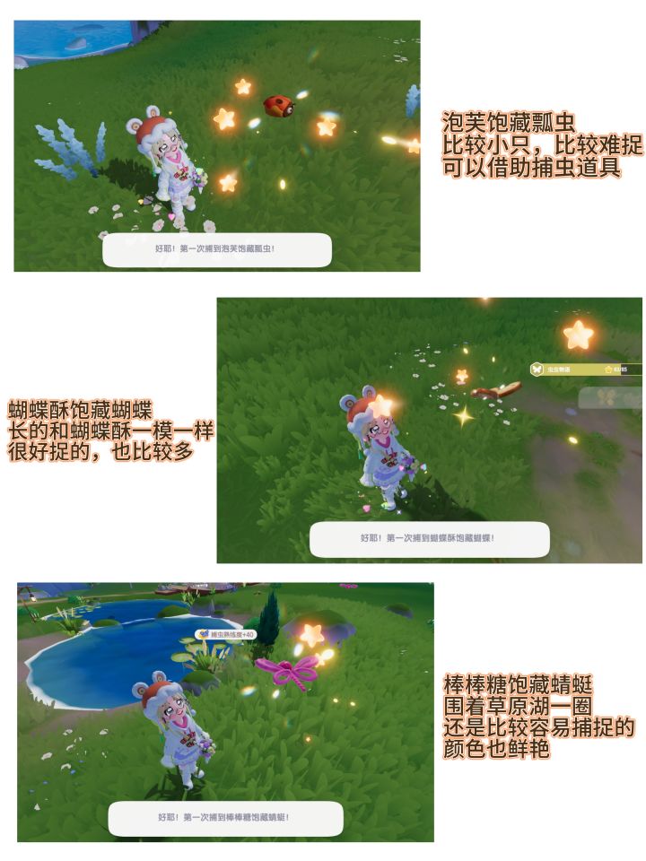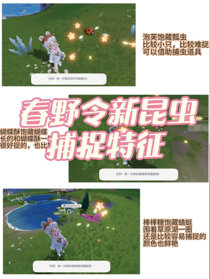 🥹这次新昆虫都超级可爱!一个个不是糖果就是小蛋糕🎂,当然,它们也有一些捕捉特征,大家可以根据这些判断捕捉时是否使用捕虫道具噢😊