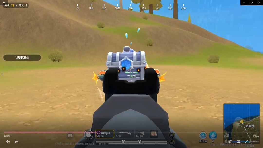 确定跳点后可以去大物资点搜物资了,每一个大屋子点应该都会有一个宝箱,虽然不多但是大屋子点不只有一个,搜完可以直接去下一个地方去找。(转移最好带载具,方便快速搜刮)快缩圈的前几十秒或者缩圈途中,你的大冤种或者小号就发挥作用了:最好站在一起,不要太远,等低保来后就可以用需要人头的号去拿人头
