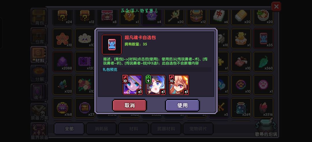 传说勇者魂卡→元素之息→腐化之尘→万古石→以太经验书→传说魂卡自选→药箱