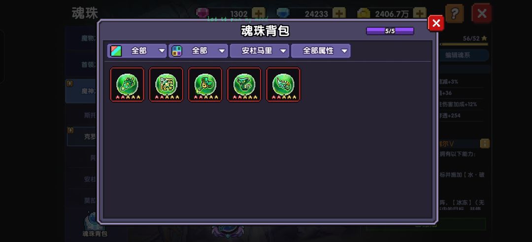 后续魂珠就优先补【忍,牧,战】系列同属性即可,魂系优先凑5级再凑同属性