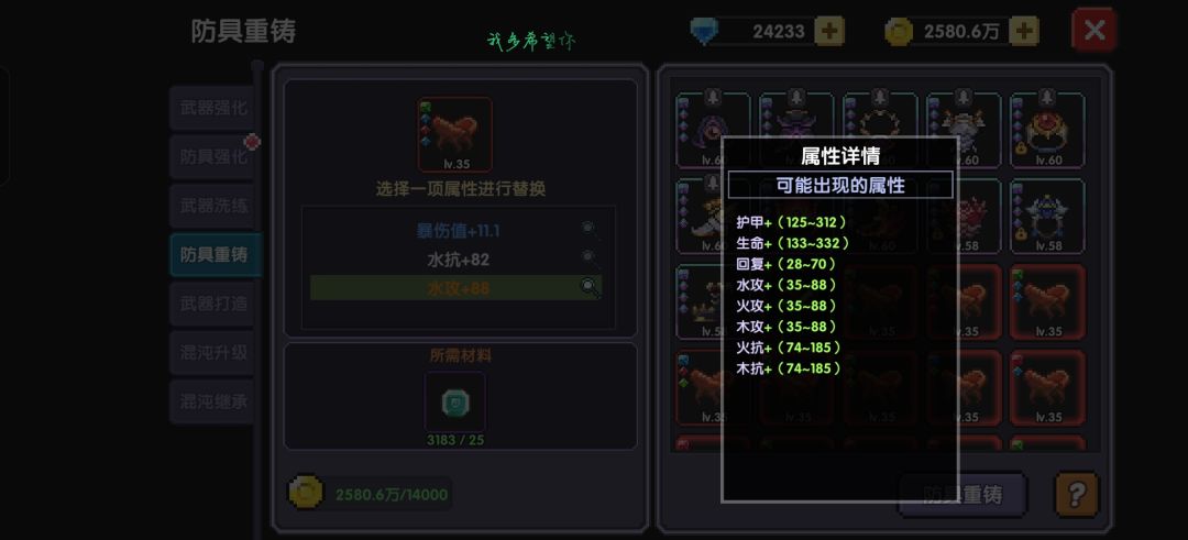 在铁匠铺在防具重铸里面可以重新洗练属性