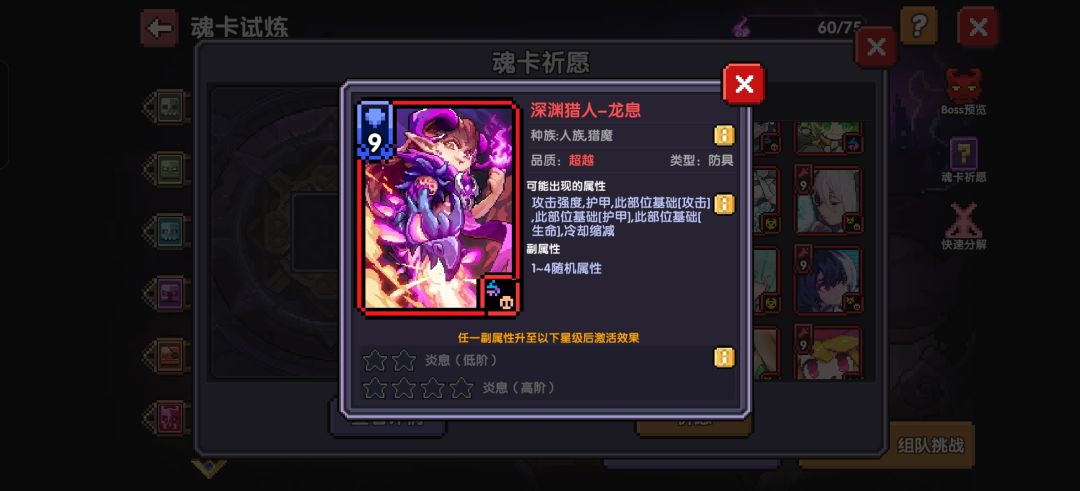 魂卡试炼:每天会自动增长15点魂力上限75点