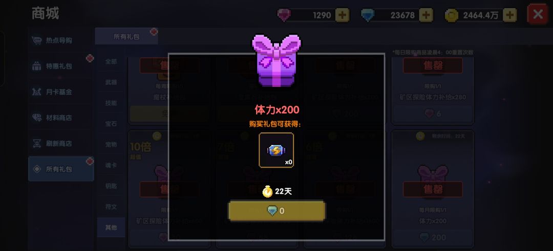 商店内每月有200点体力(200钻)以及每日的40点体力(50钻)