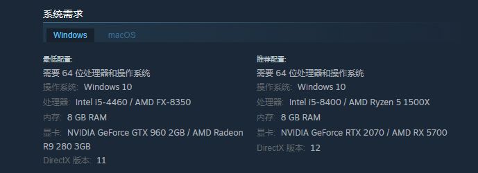 - 显卡:NVIDIA GeForce RTX 2070 / AMD RX 5700