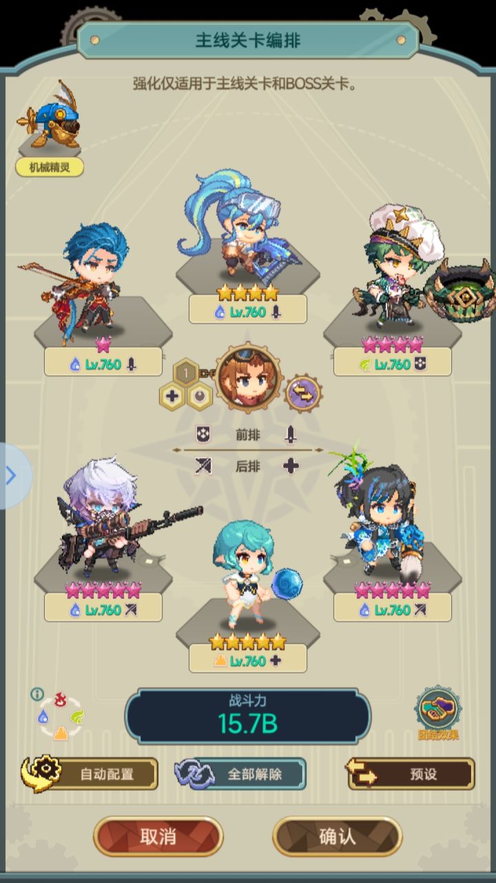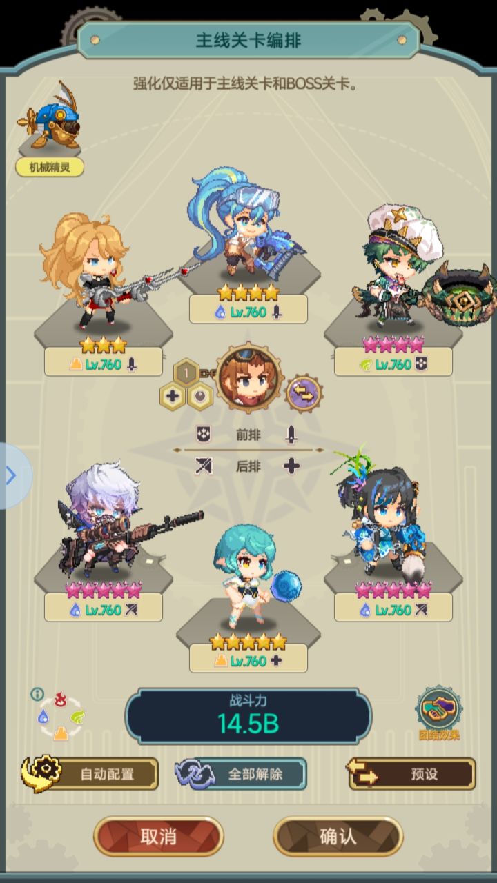 最后关于前排“雷克斯”,本人使用是因为他能辅助后排主c(具体技能可游戏内英雄图签自看),缺点是无敌护盾至少需三觉才能激活,爆伤加成每星也只加5%,完美到50%要满觉,成本较大。如不喜欢“雷克斯”,可将之换成“面珑”。