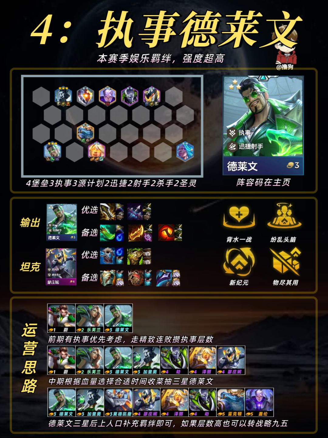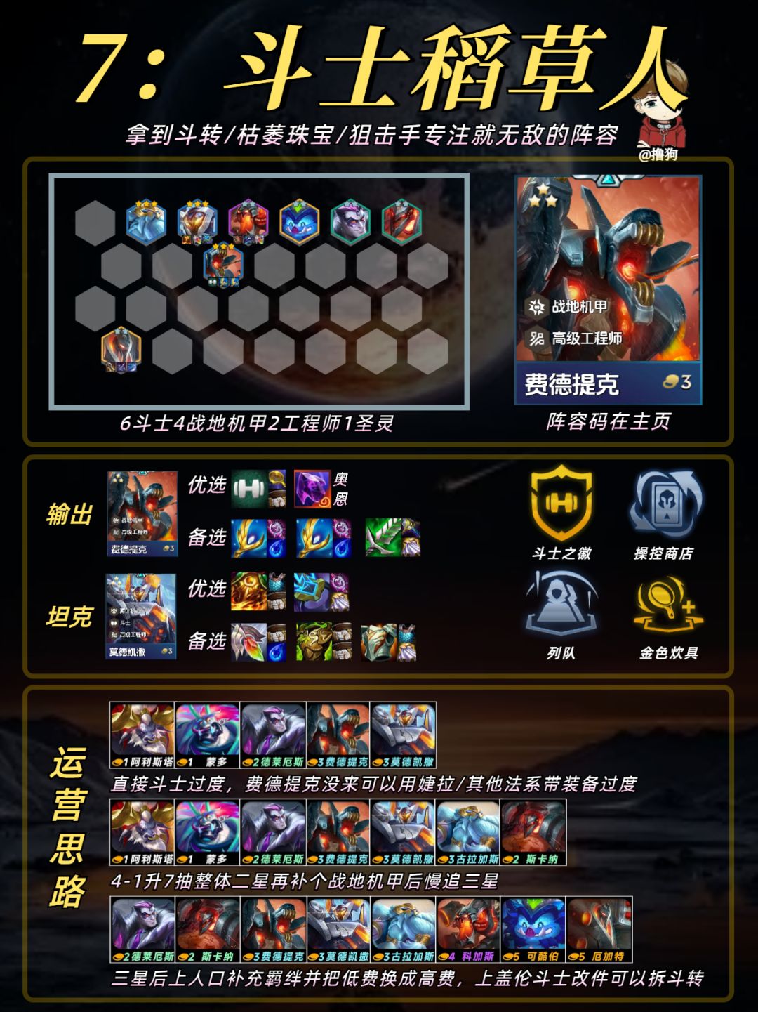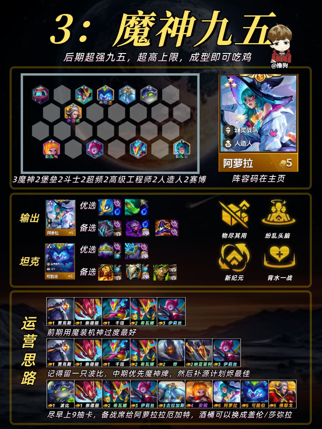公众号爱下棋的撸狗有全部阵容攻略及代码,每日更新阵容榜单,下棋攻略