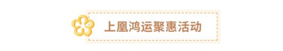 1、4月11日00:00至4月24日23:59期间,“上凰鸿运聚惠”活动限时开启