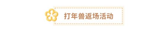 1、4月11日00:00至4月17日23:59期间,跨服首领打年兽活动限时返场。参与活动有机会获得卡皮巴拉碎片、大橘为重碎片、搅乱一锅粥碎片等丰厚奖励