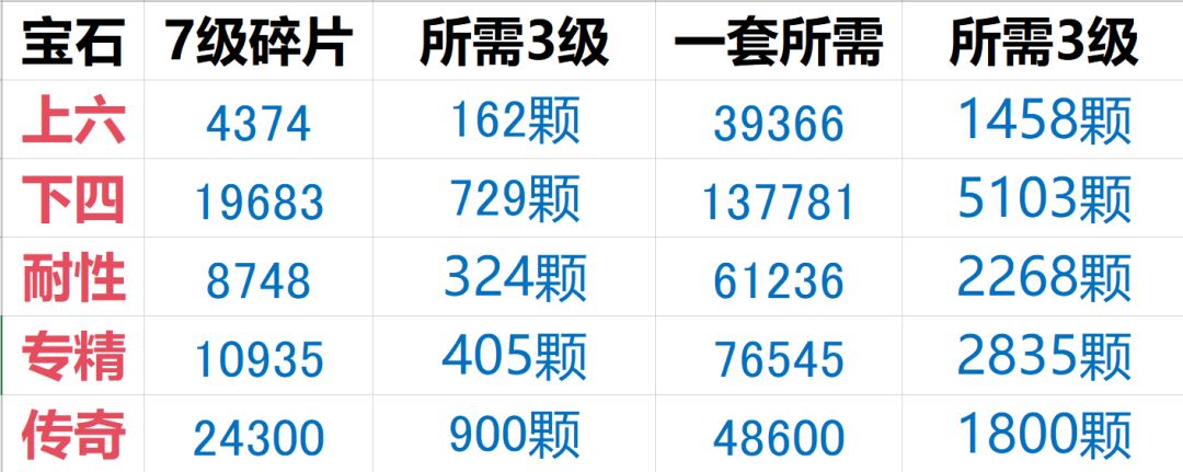 根据以上表,可以得出如果只靠商店里兑换宝石,所需要的3级宝石数量