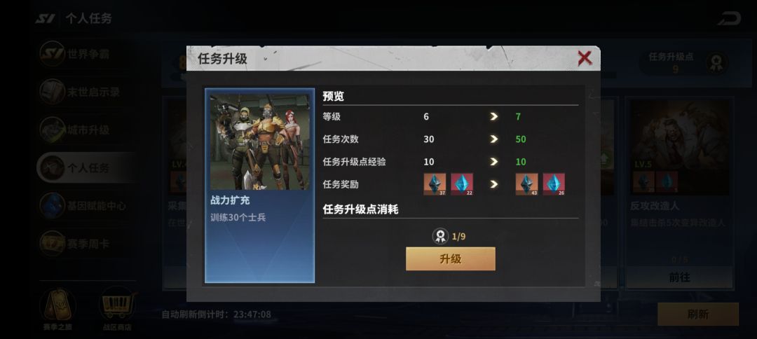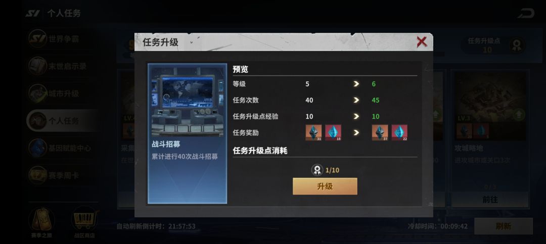 各位指挥官们好,今天由红薯哥哥给大家带来黎明堡垒S1赛季个人任务的攻略,上一篇攻略我详细介绍了建议升级的个人任务来获得基因工程的材料,下面再详细给大家讲讲其他任务是否适合升级。(内容整理自玩家投稿,所有数据仅供参考,不代表官方立场)
