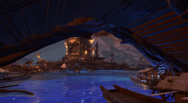 为了匹配这种包容度,我们采用了立体结构设计,沿山而建的诡市纵向分为三大区域:月下叱罗、平原市集、水下世界,再加上散落环绕的悬空浮岛,便构成了如今的叱罗诡市。