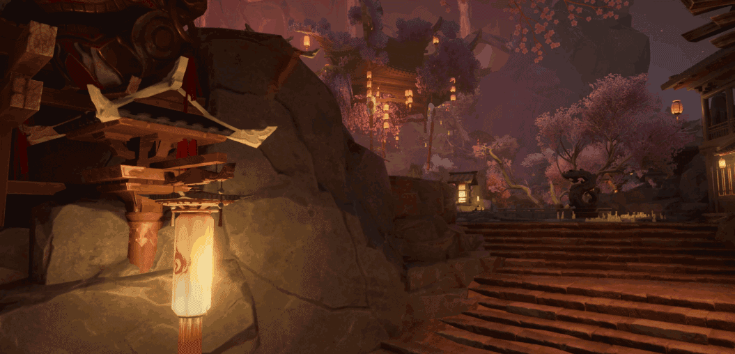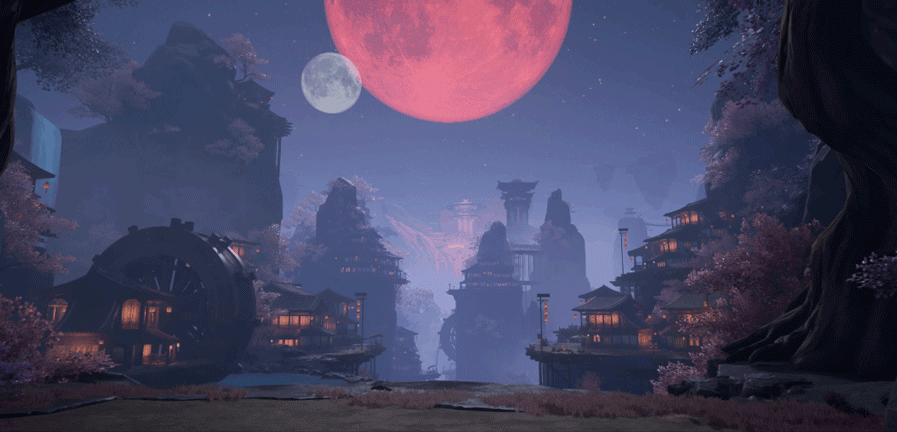 妖界本是一方隔绝日照的晦暗领域,所幸有羽妖与叱罗的族长以双瞳起阵化月,照亮这方天地。循此设定,我们颠覆了用太阳做地图光源的传统做法,在诡市,映照天地的是永远高悬的幻月。也因此,整体视效会更加神秘奇幻。