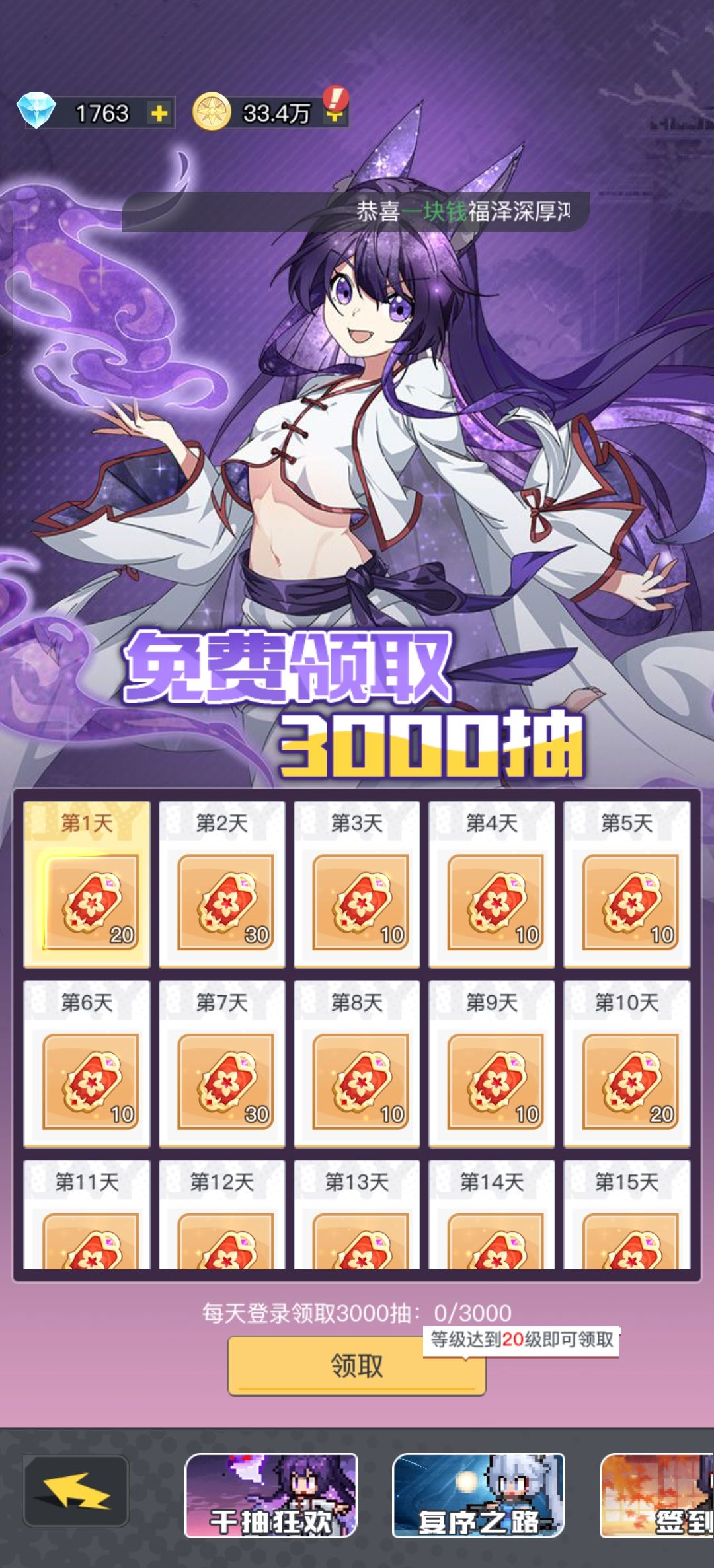 - ⏺️游戏开服呢就有3000抽❗❗的签到奖励,这点来说很良心了。