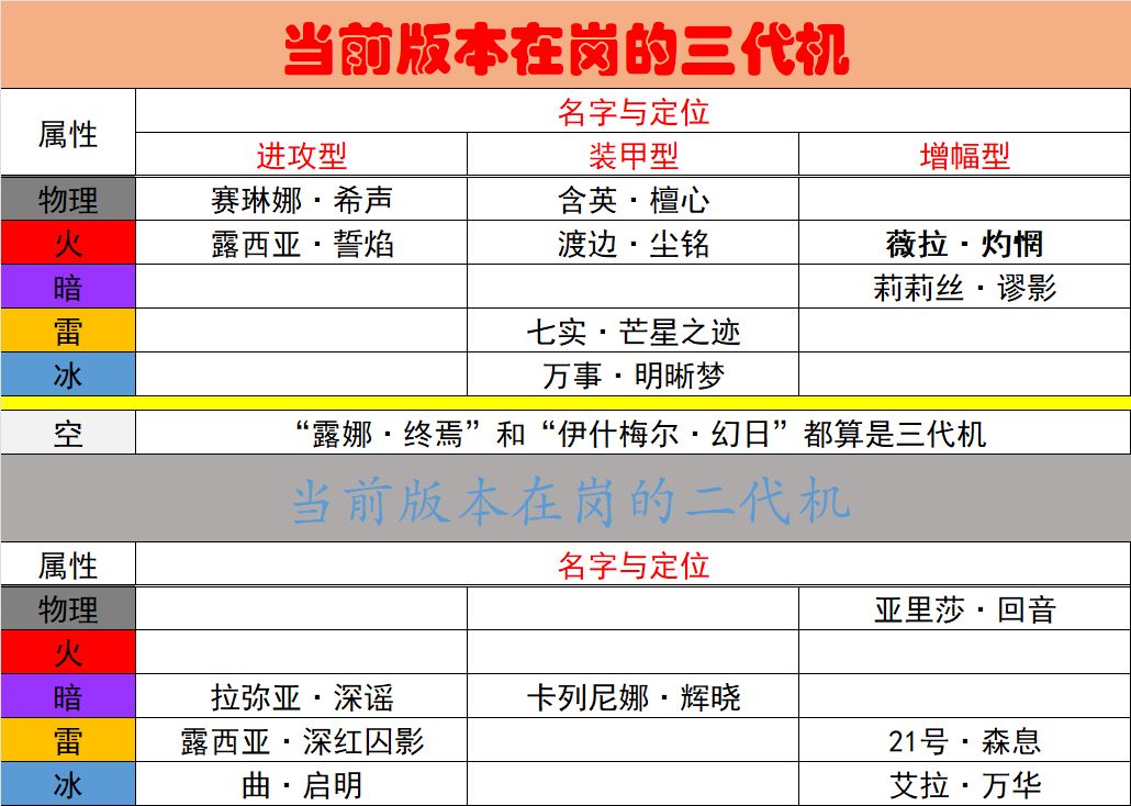 由于这版本的新S级“薇拉·灼惘”是火系,所以这时疾雷补物理属性属性角色,就能做到全属性都有输出角色。