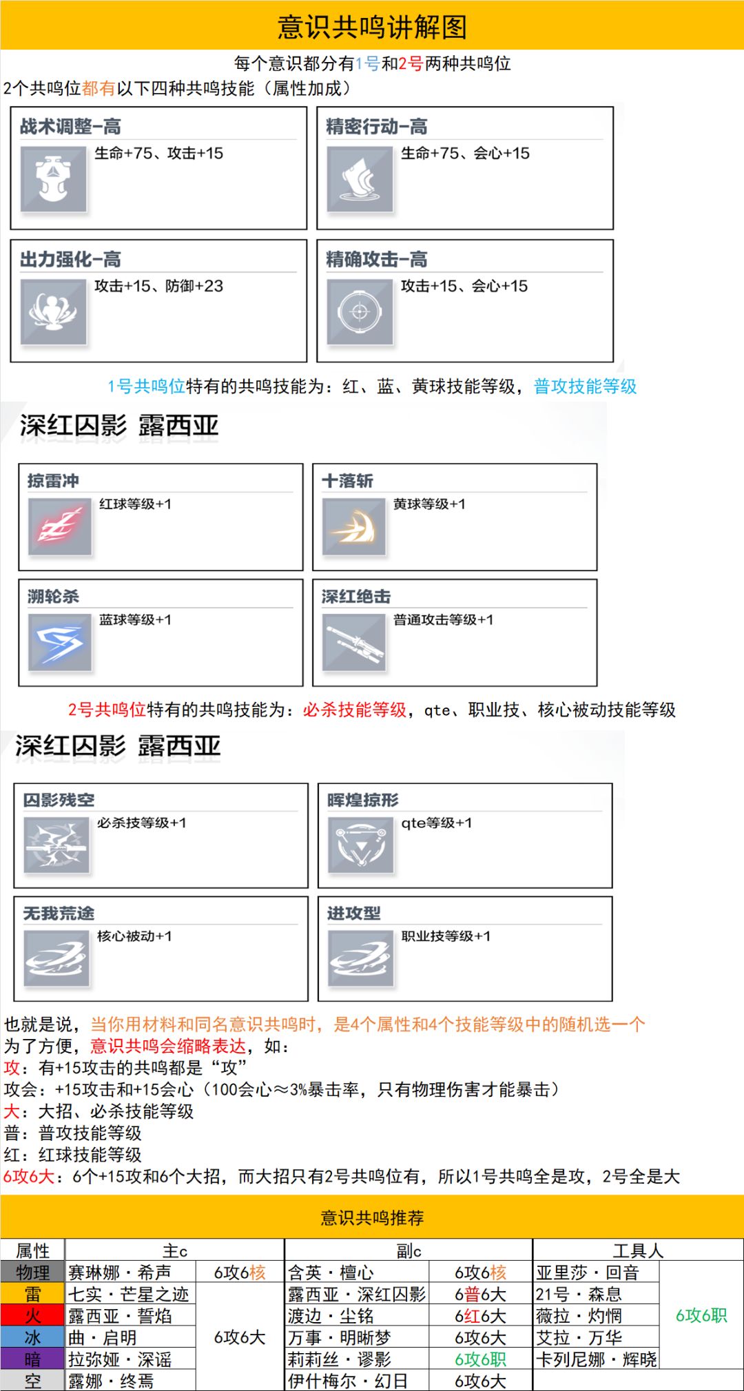 有关角色定位、意识和武器共鸣的相关内容,我先直接放图,能看懂多少就看各位的悟性了。