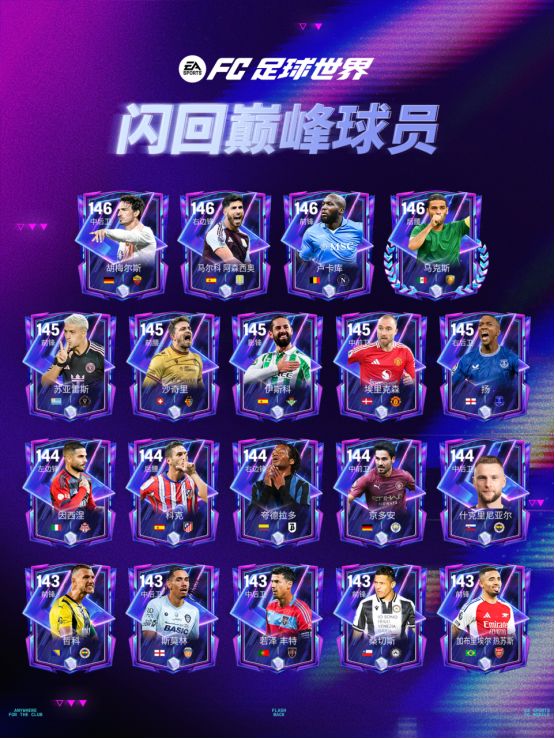 闪回巅峰活动持续进行,强力球员再度来袭!本周四,闪回巅峰球员团队2正式上线。本组球员共计33位,基础能力值为138-146。其中,146能力值的闪回巅峰团队2球员有胡梅尔斯、卢卡库、马尔科·阿森西奥、马克斯四位。