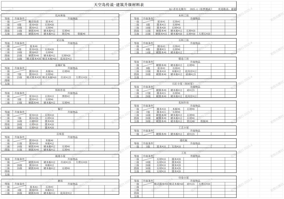 另外,补一张目前可以做到的建筑升级表