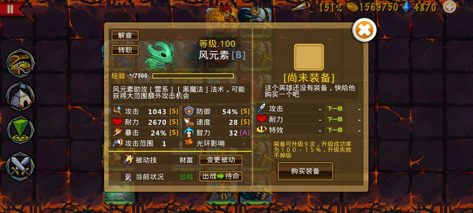 阵容如下:2个二转湖仙(在3-1可抓),8-10个迅捷电法(速度最差A),6-8个风灵(财富>幸运),4个重盾(幸运),加上弓团长。