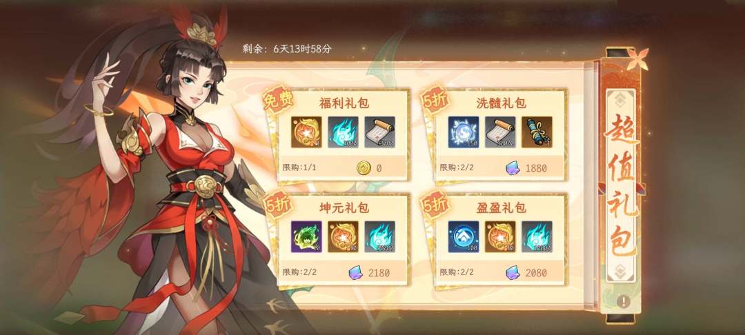 活动内容:活动期间登录游戏可以免费领取福利礼包,同时还有更多折扣礼包限时特惠。