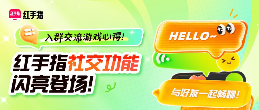 还在等什么?快来红手指体验全新「群聊 & 好友」功能,开启精彩的游戏社交新旅程吧!说不定下一个游戏大神,搬砖富豪就是你!🎈