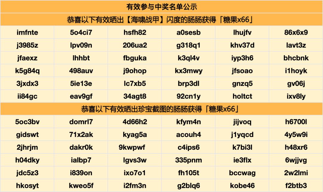 蛋卷还将抽取36名有效晒出自己单局结算时带出的珍宝截图的幸运肠肠送出糖果×66的奖励!
