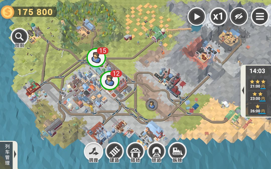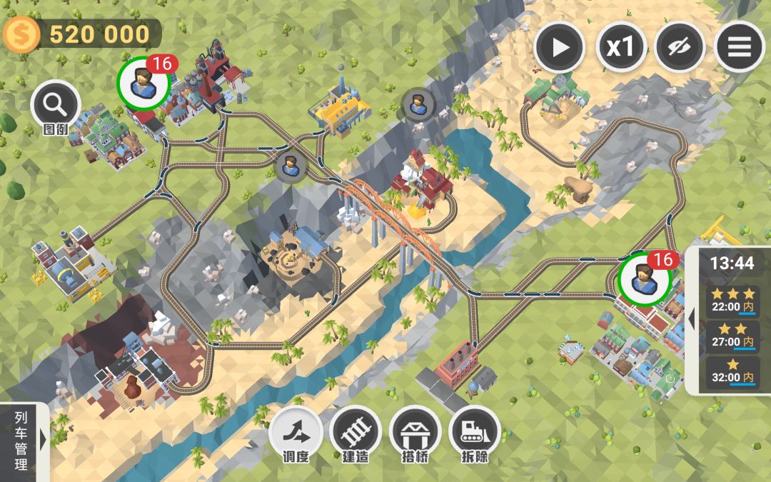 第40关,注意⚠️如果不想生产目标以外多余的材料来赚钱的话,不要买新的列车和提前建造后期才会用到的隧道或者桥梁,不然后期钱会不够用,将三辆列车升级升满即可。
