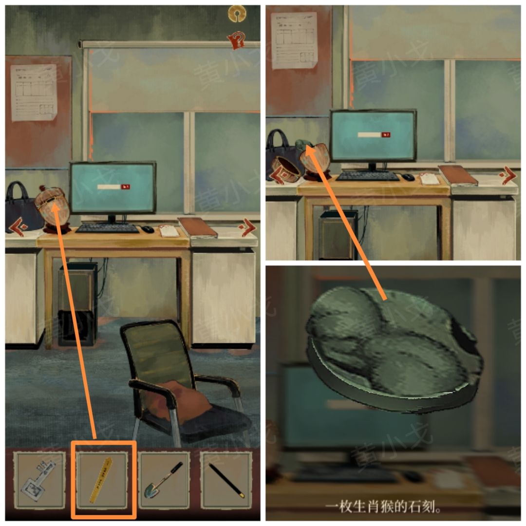 1.把【签】插入栗子形盒子;打开盒子,获得【猴石刻】