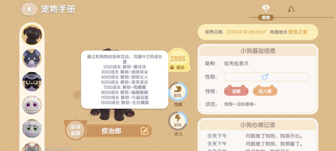 强烈推荐通过喂食抚摸其他玩家的狗来快速升级!!!