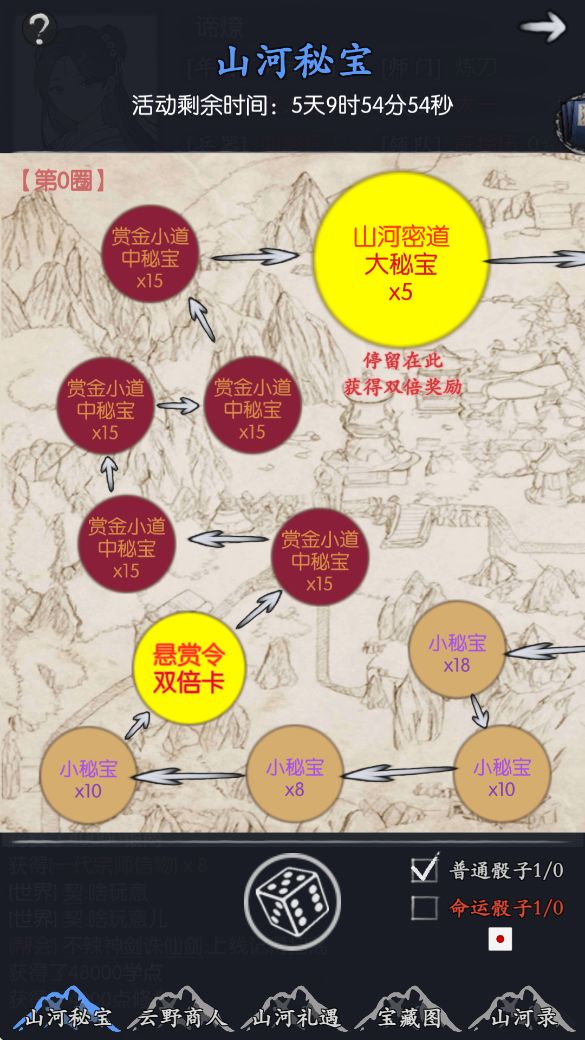 山河密道:停留在山河密道则该地点奖励翻倍。