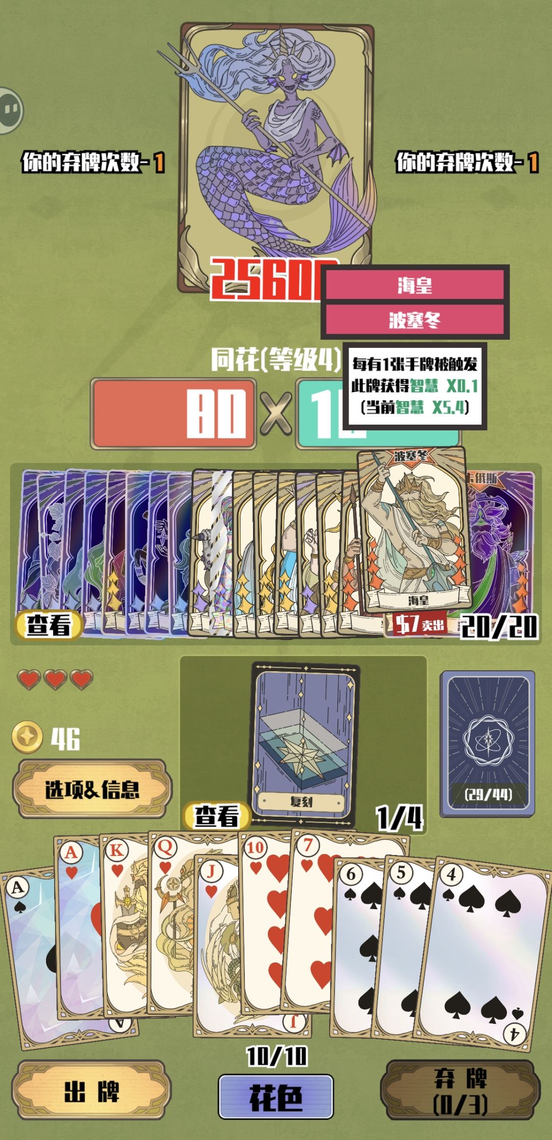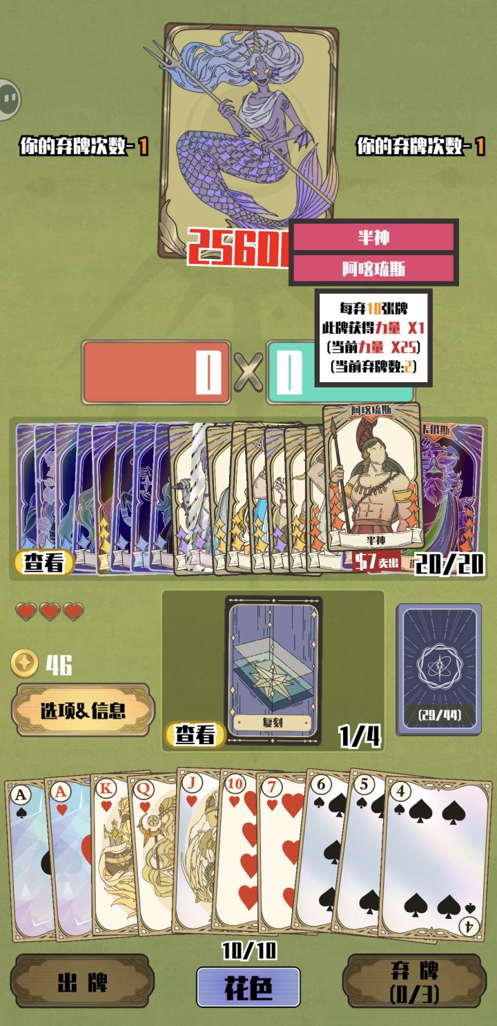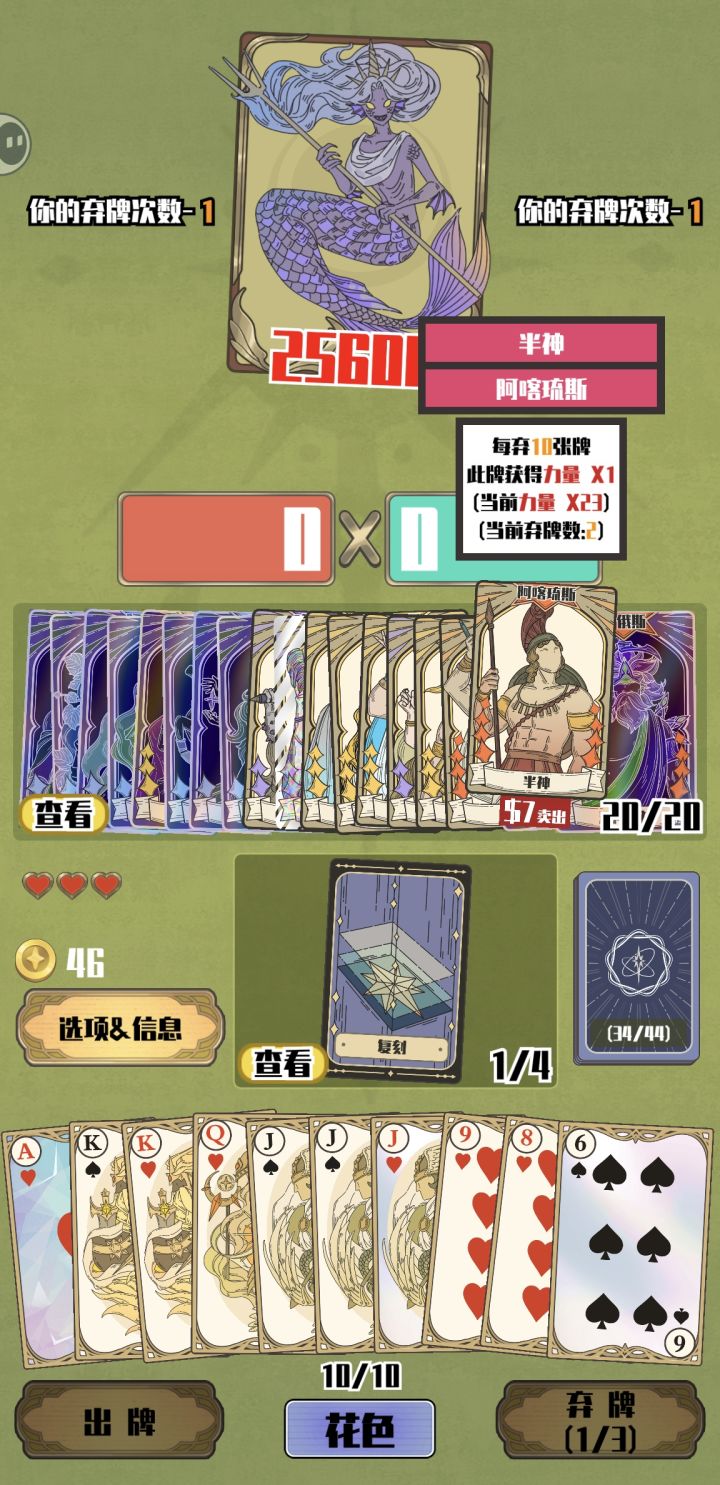 用法二:养成。每次弃牌、胜利等,可以让左侧牌计数翻倍,咻咻快养,而且重点是可以叠加,图里阿克琉斯只弃了五张牌,倍乘直接+2(感觉如果配合增加弃牌次数之类的卡,效果还能往上加,我海王孤零零一只暂且养得逊色点...);复刻用咒语牌碰运气,或者死神复刻(俩混沌放死神右侧,一回合快养复制)