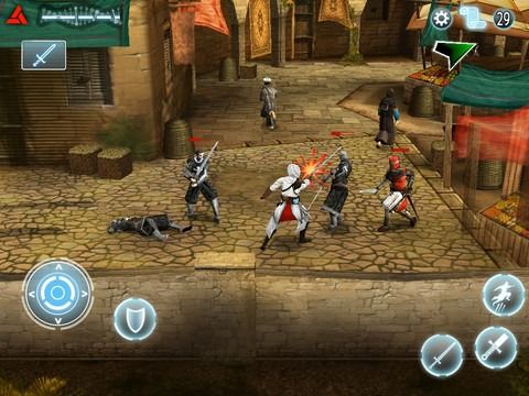 画面表现更堪称移动端的文艺复兴:耶路撒冷的石板路布满十字军铁蹄的凹痕,大马士革的丝绸商队扬起的尘埃会随角色移动而飘散,夜晚场景中火炬的光影在阿泰尔斗篷上投下流动的阴影。这些当年掌机平台难以呈现的细节,在现代手机的 OLED 屏幕上焕发新生,甚至连刺杀时溅在屏幕边缘的血迹,都成为沉浸式体验的点睛之笔。