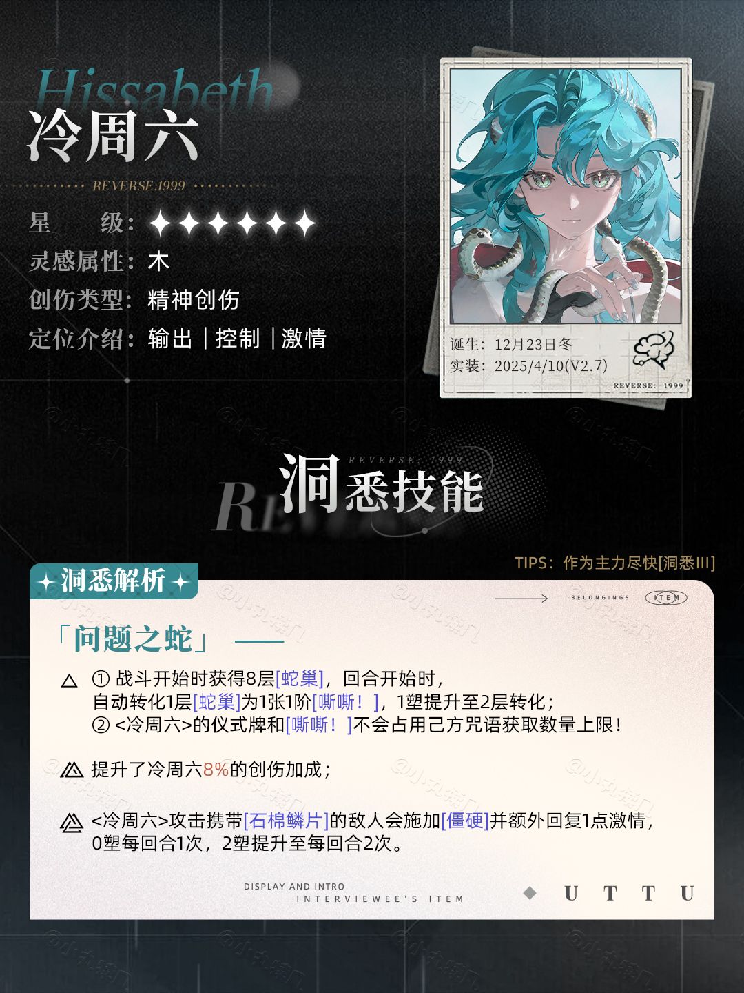 本期带来的是【重返未来1999】V2.7上半卡池的新角色~