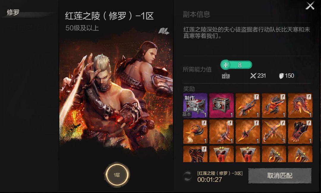 成功击败红莲之陵(修罗)-1区的BOSS后,将有机会获得: