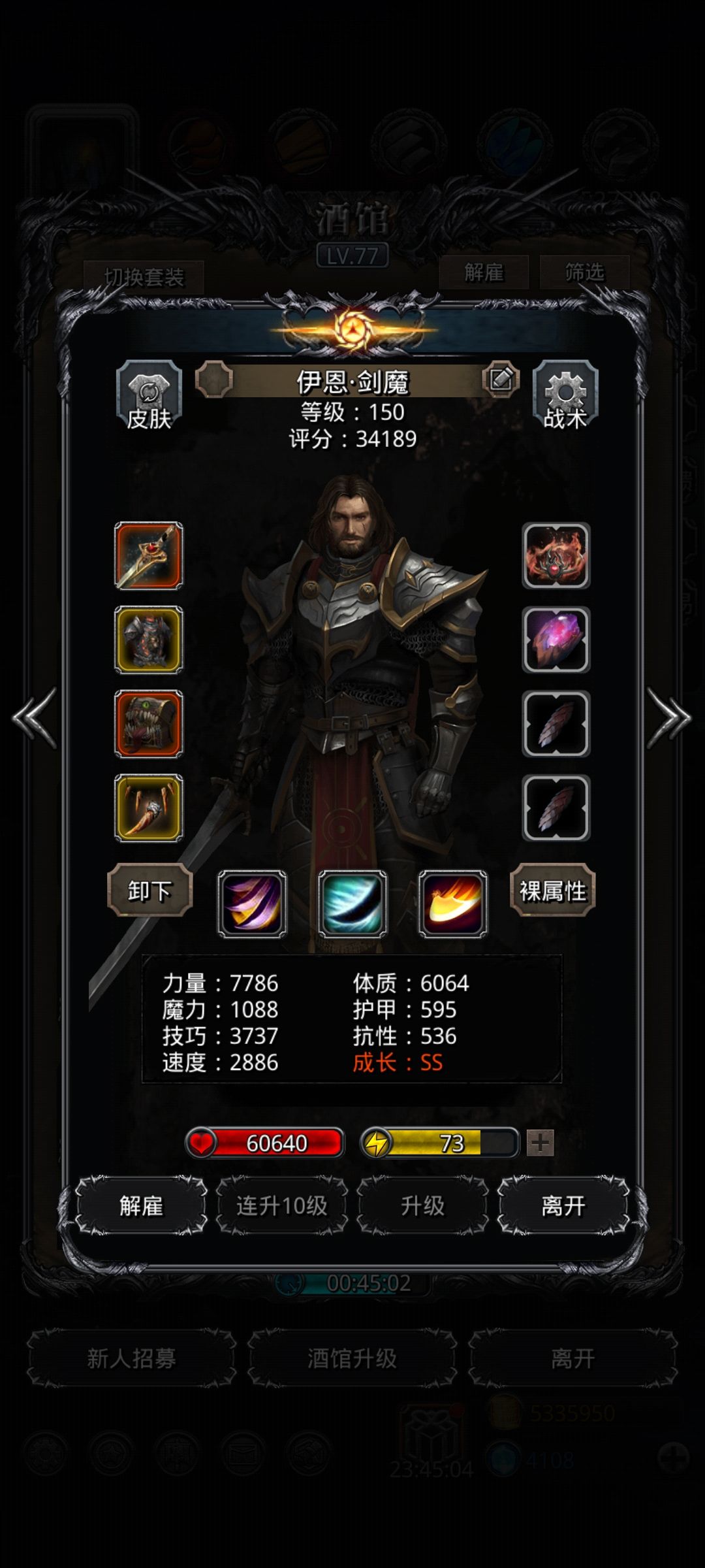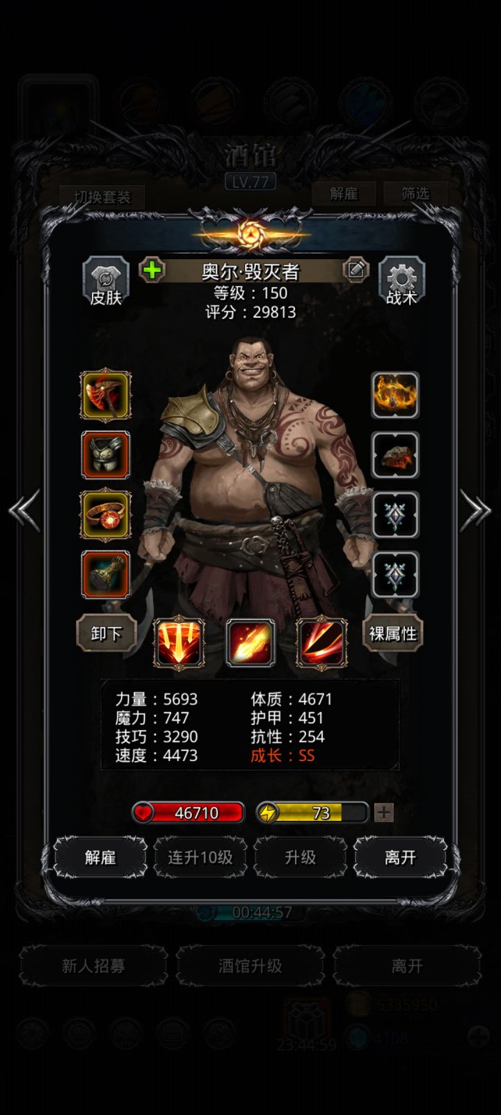 人生从没发过贴,这是第一次。给大家一点个人小小的建议。第一,零氪玩家,战利品全靠刷的,没极品,人物也是基本都在及格线上下。第二,这个boss输出很够,个人总结第一第二死的必须是火法和夜宴,顺序不论,输出差不太多关键,在于第三第四能否站得住。因此试了几次之后,剑豪换成剑魔,保证如果最后留剑魔能站到最后。如果最后留毁灭,自己要试好输出和体力,个人感觉堆到50000血,力速比1.8能较为稳定站到最后。战利品方面,剑魔0力速堆输出,蛮子堆输出兼顾体力,火法10单吸满命,夜宴双吸满命。最后输出是3分45秒左右结束,因此输出很够的