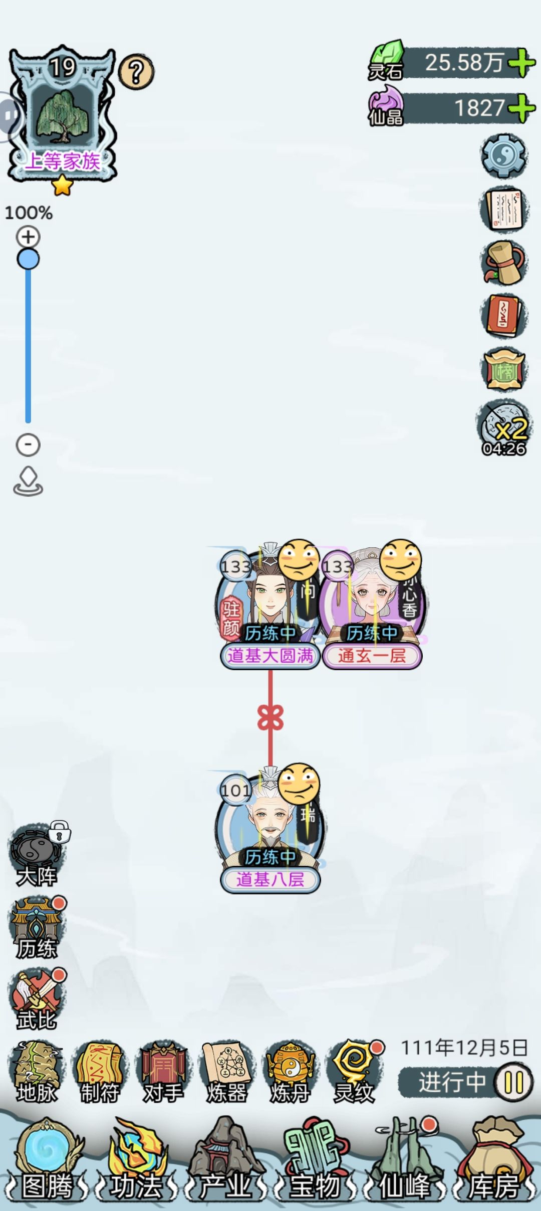 前期的时候仙晶和神源点、推演点比较少,不过也不用看广告,三个人消耗资源很少,很快就可以自给自足啦。资源集中给10级灵根的对象(软饭流